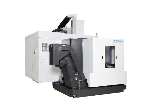 - Double column design with patented triangular crossbeam provides expansive work envelope and superior rigidity when compared with C-Frame style machines