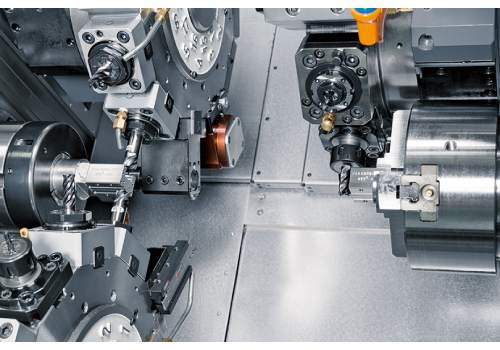• Simultaneous cutting with upper and lower tools on L/R opposed-spindles ensures balanced processes and faster cycle times.