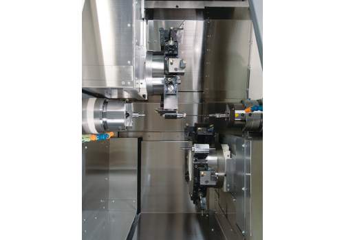 • Simultaneous cutting with upper and lower tools on L/R opposed-spindles ensures balanced processes and faster cycle times.
